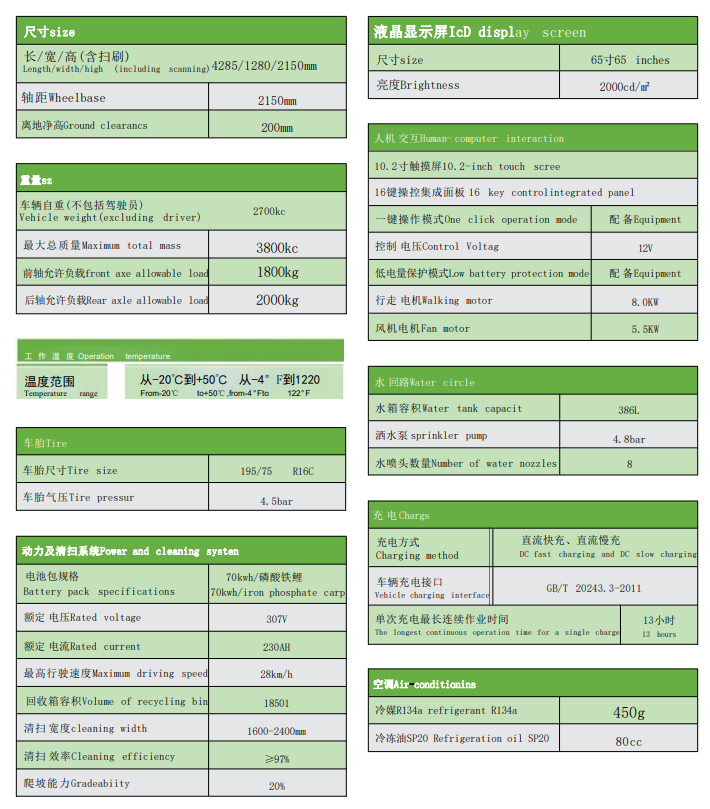 JC-DEV8240 多媒體掃路機配置有全景玻璃結構的駕駛室,舒適冷暖空調(diào)、安全警示工作燈、10.2寸超大觸摸屏、 一鍵操作按鈕、行車 和倒車雙錄高清行車儀 。70kwh 的超大容量電池組65寸大液晶顯示屏 ;掃刷轉速采用手柄式速度調(diào)節(jié)閥控制,可以根據(jù)道路實際路況控制無級調(diào)速 ;清掃掃刷位置和吸風口位置采用水霧噴淋裝置,確保在清潔過程中不會產(chǎn)生揚塵造成二次污染 ;該機掃刷寬度有調(diào)節(jié)功能,可由1.6米調(diào)節(jié)至2.4米,廣泛適用于城市非機動車道、城市廣場、公園、體育場館、會展中心等場所的清掃作業(yè)。